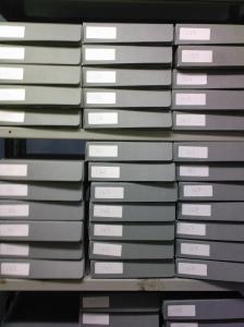 I spent this afternoon digging around in the Bishopsgate Institute‘s archive, which is housed in the basement of the building. Much of the material is stored in heavy-duty grey boxes with labels like ‘London Collection 3/5’ and ‘ICA Minutes 192-208’. You’ve just gotta start somewhere, so I pulled out one of the London Collection boxes. Inside, lots of what you’d call ephemera – news clippings, land and property deeds, picture postcards, eighteenth century cartoons, advertisements for Charles Chubb‘s Improved Patent Detector Lock and Wiss’s Self Acting Portable Water Closet.