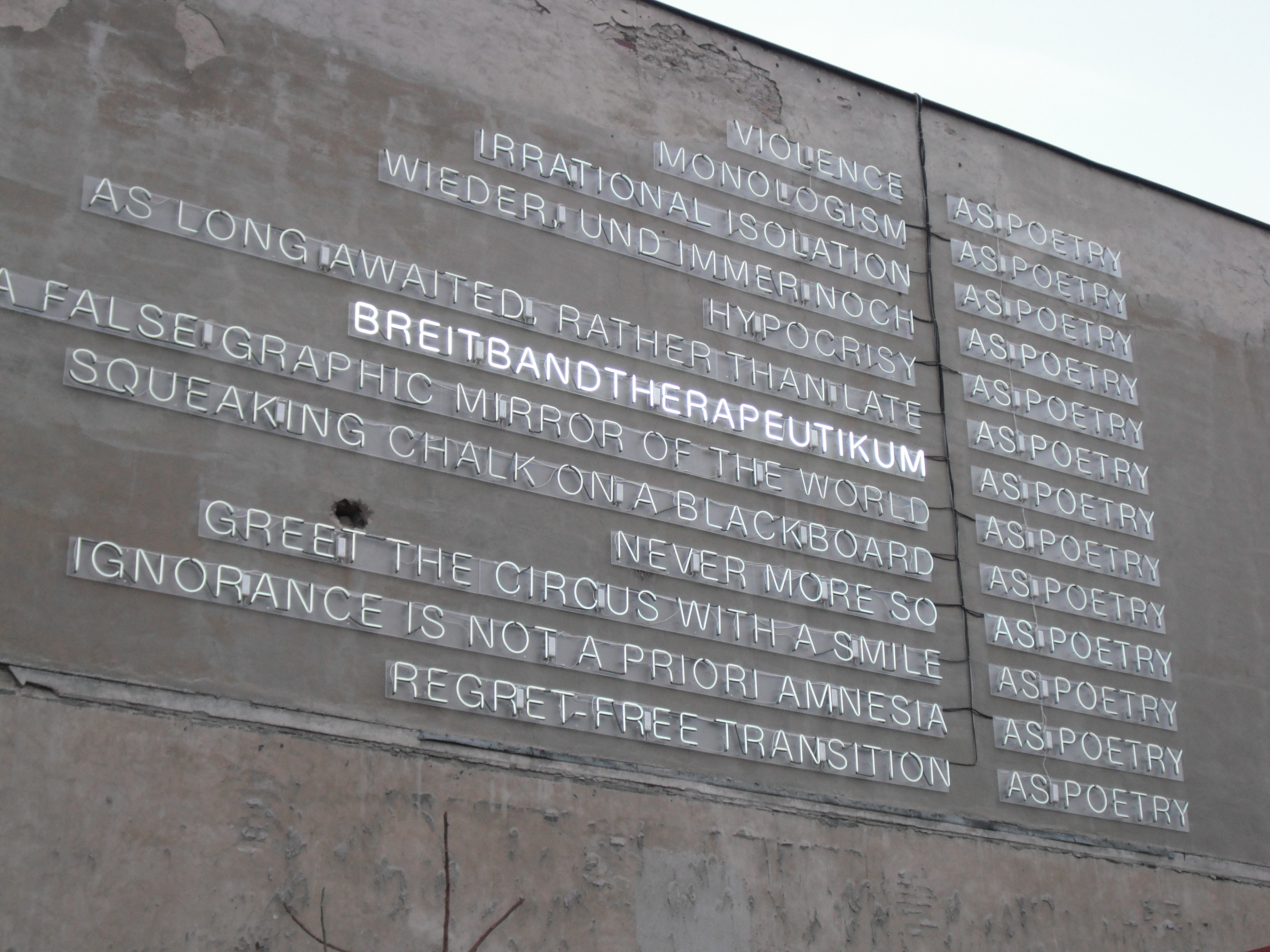 Next – Checkpoint Charlie, which is touristy. Find a cool neon art installation thingy about poetry (but really about the fall of the Berlin Wall). Took some snaps. Then back home on the Metro or whatever the Berliners call the Tube. Unsurprisingly very efficient! I really enjoyed our little ride from Stadtmitte to Rosa-Luxemburg Platz.