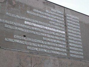 In summary, a full, exhausting and enjoyable weekend. Berlin is a weird city, it seems to me, with my tourist’s eyes. I couldn’t quite get a handle on it. Where is the centre? Why are the streets so quiet? Why are there so many patches of unused land and derelict buildings?