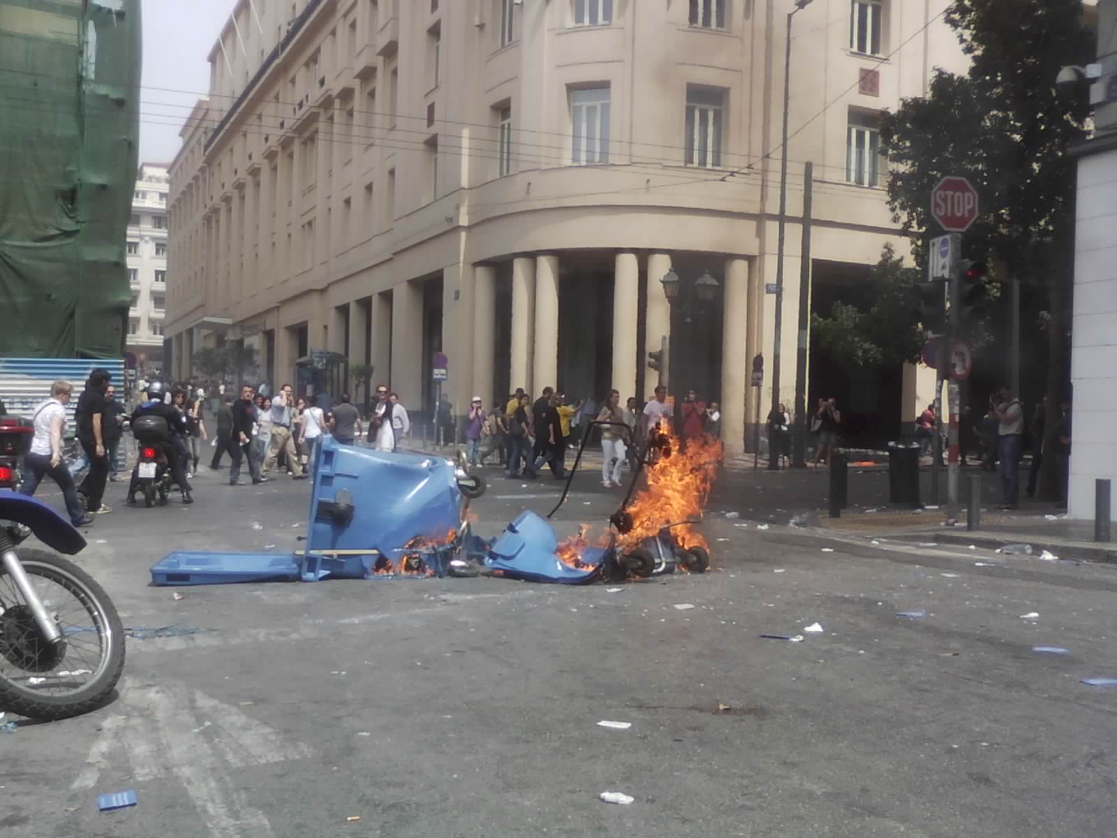 This comes towards the end of a day of violent protests in Athens, in which three people (including, allegedly, a pregnant woman) have tragically lost their lives.