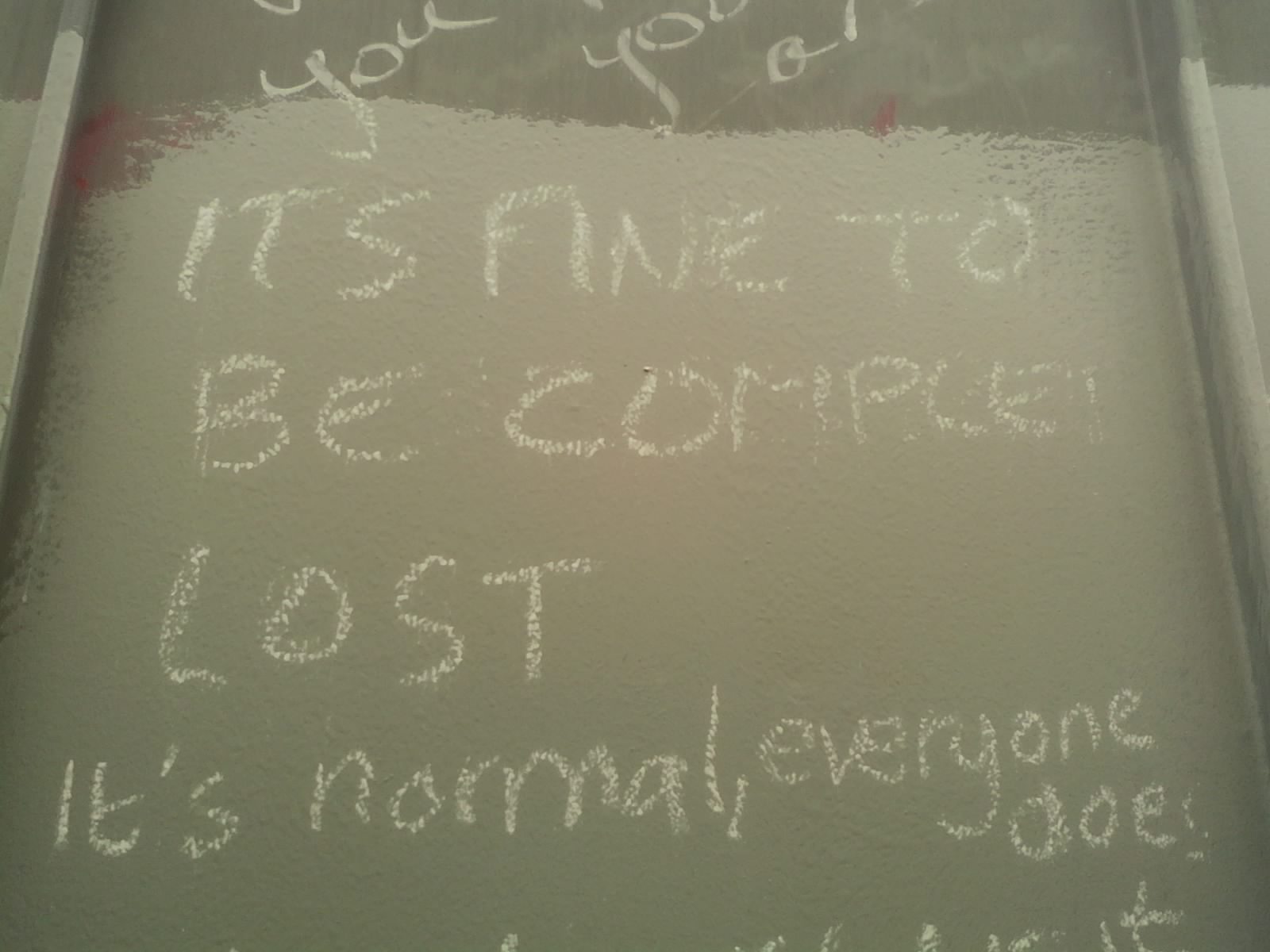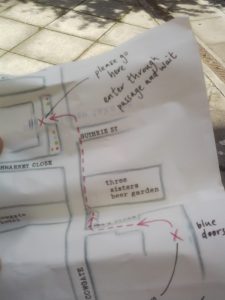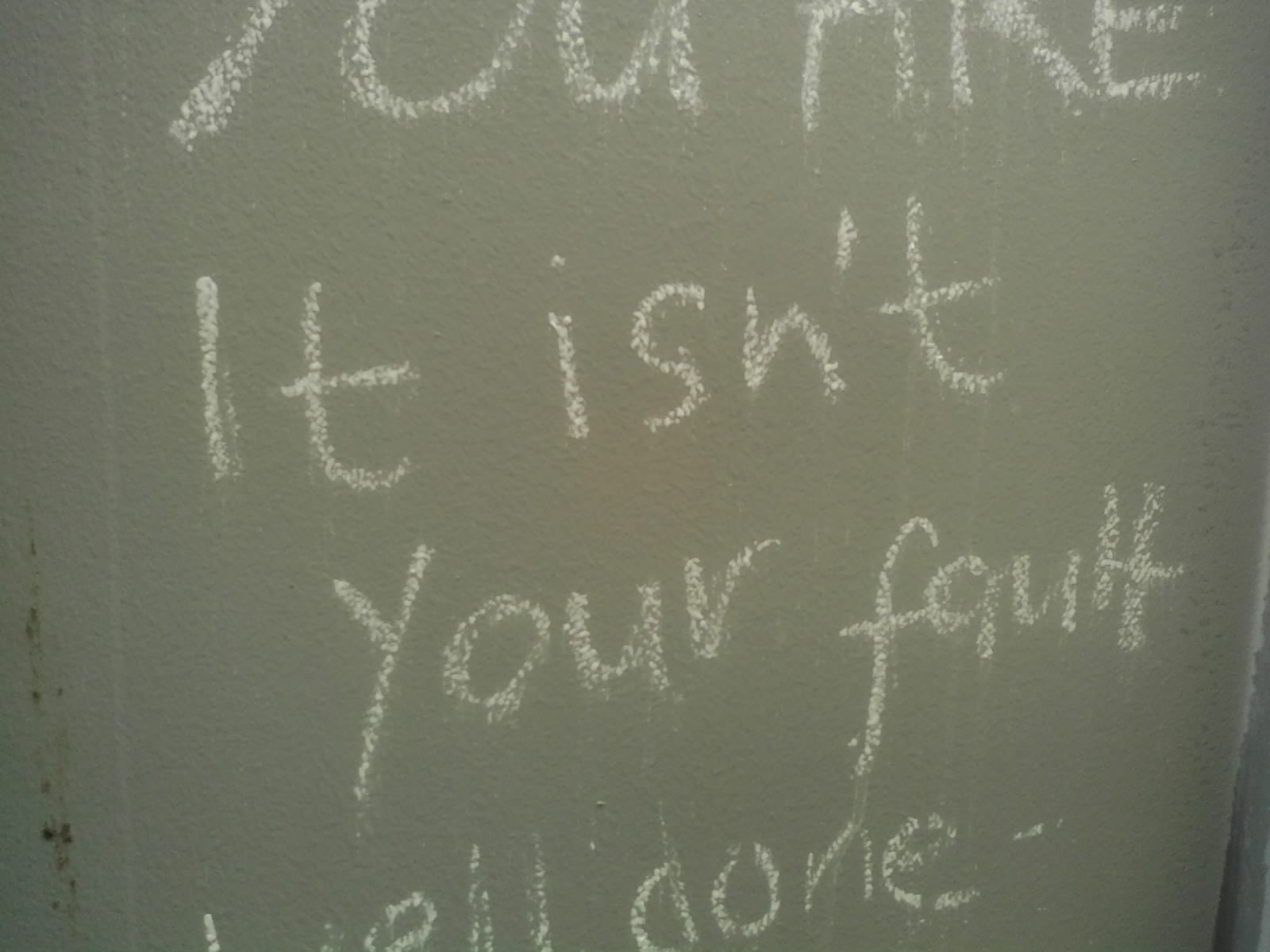 At one point you are led into a backstreet where a hidden wall has been covered in chalk graffiti (by previous participants). You stand here for a few minutes’ contemplation, and are asked to add your own.