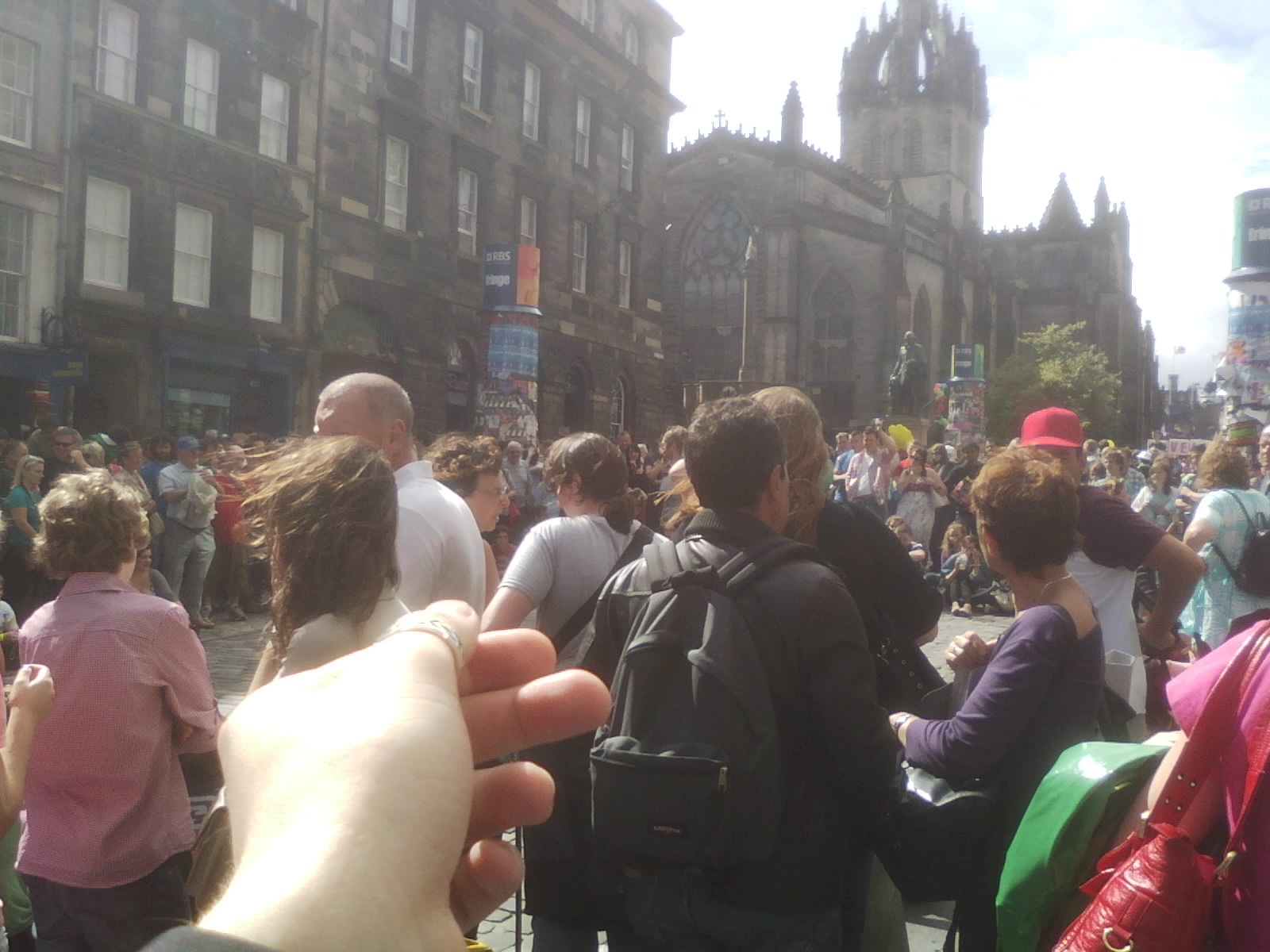 Edinburgh in August, you hardly stand out amongst the street artists, lost tourists, pipers and performers running to shows in full costume. Moments of recognition, though, are compelling – a passing glance with someone who’s “in” on the trick.