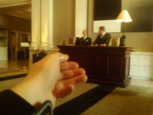 You are instructed, at one point, to wait in the lobby of the Balmoral Hotel, and make a phonecall to someone.